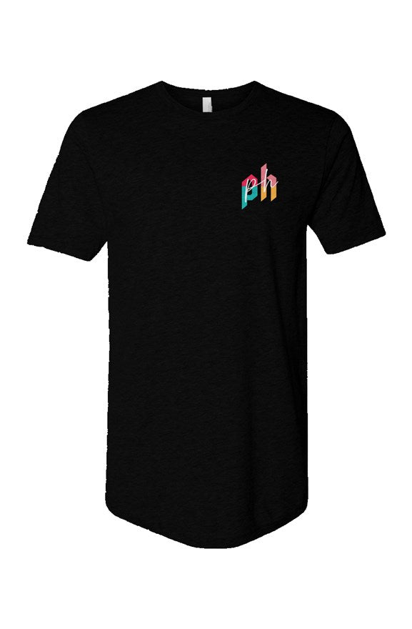 Been around the world and back? Let 'em know with our exclusive Stamps On Stamps long tee. This premium quality t-shirt features a bright & vibrant digital print design on the back with a matching PH logo on the front. It is made up of combed cotton, blended with polyester for the perfect amount of softness. Additionally, it is cut taller than a regular tee and features a fashion-forward rounded cut at the bottom.