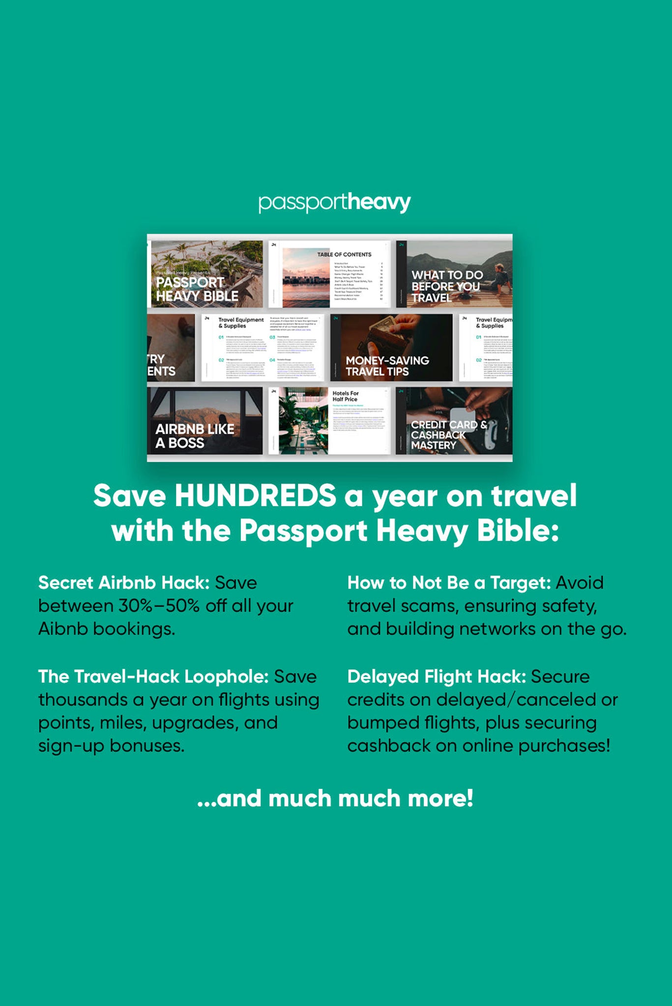 The Passport Heavy Bible is your ultimate guide to saving thousands on travel. Packed with over a decade of insider knowledge, it shows you how to fly first or business class for free (or close to it), stay in 5-star hotels or Airbnbs at deep discounts, and master luxury travel on a budget—all in 30 days or less.